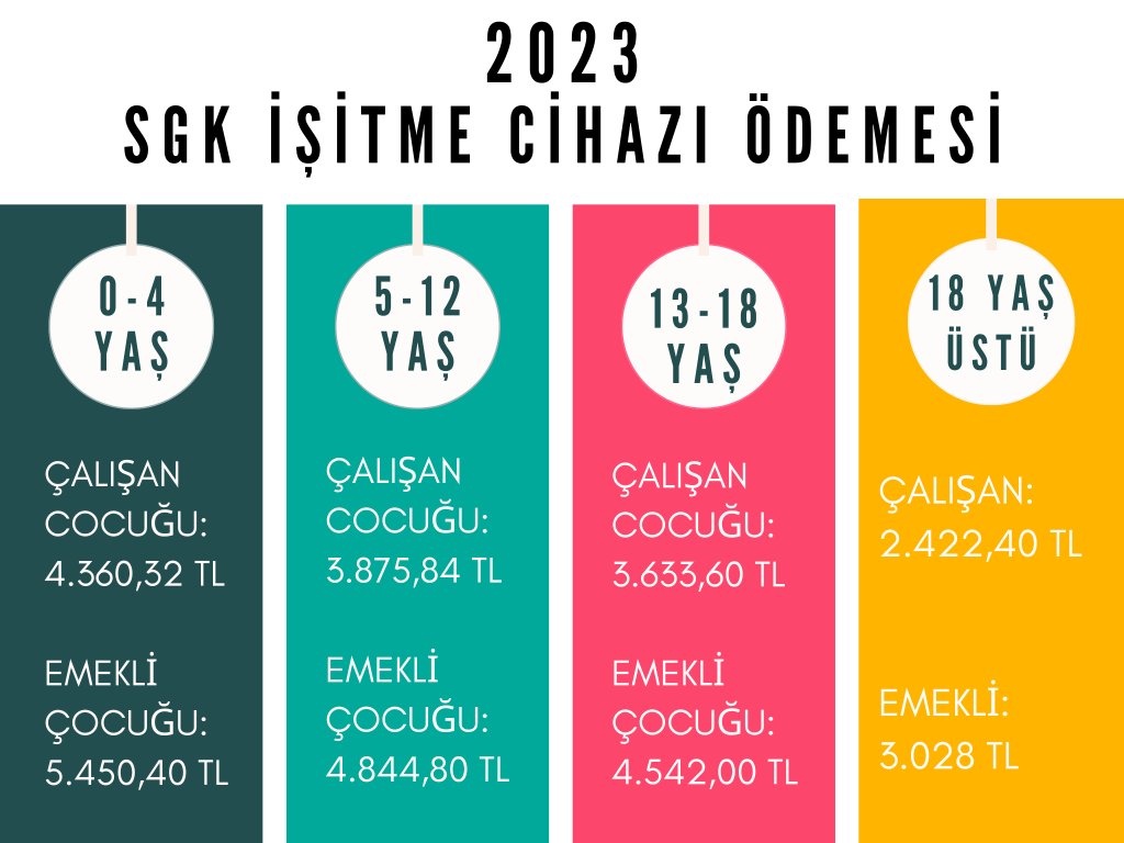 2023 yılında işitme cihazı devlet desteği ise aşağıdaki tabloda kriterlere uygun olarak sıralanmıştır.